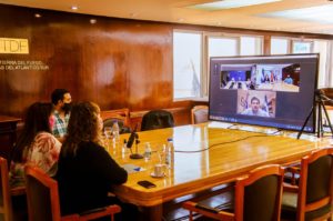 Ushuaia, miércoles 9 de septiembre de 2020.- La Presidenta del Parlamento fueguino, vicegobernadora Mónica Urquiza acompañó al gobernador Gustavo Melella en la suscripción de un convenio de asistencia financiera con el Administrador del Ente Nacional de Obras Hídricas de Saneamiento (ENOHSA), Dr. Enrique Cresto.