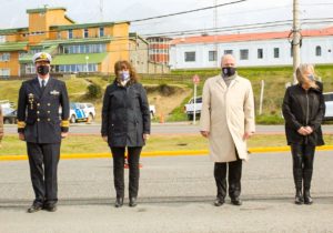 Ushuaia, 15 de noviembre de 2020.- La Presidenta del Poder Legislativo, vicegobernadora, Mónica Urquiza junto a la ministra de Gobierno, Justicia y Derechos Humanos, Adriana Chaperón, funcionarios provinciales y municipales y ex combatientes participaron del acto homenaje al cumplirse 3 años del naufragio del ARA San Juan.