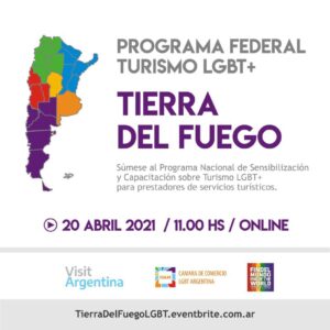Ushuaia, domingo 18 de Abril de 2021.- El próximo 20 de abril a las 11 horas, se llevará a cabo el taller virtual para Tierra del Fuego sobre Turismo LGBTQ+, organizado por la Cámara de Comercio LGBT Argentina junto al INPROTUR y el Instituto Fueguino de Turismo.
