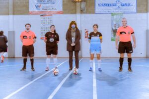Estuvo acompañada por la subsecretaria de Relaciones Institucionales del Ministerio de Trabajo y Empleo, María Bockelmann; el presidente de la Liga Ushuaiense de Fútbol, Marcelo González; y la coordinadora del Departamento FUTSAL Femenino, Anahí Vigil.