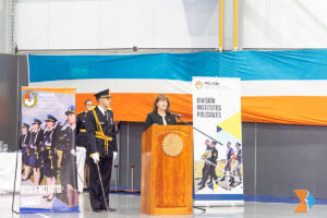 Río Grande, martes 21 de marzo de 2023.- La Presidenta de la Legislatura de la Provincia, en ejercicio del Poder Ejecutivo, vicegobernadora Mónica Urquiza participó del acto por el 29° Aniversario de la División Institutos Policiales y el inicio del ciclo lectivo 2023 de la Escuela de Cadetes de la Policía de Tierra del Fuego en su nivel terciario. La Vicegobernadora de Tierra del Fuego, celebró “la integración” de hombres y mujeres “comprometidos” con la sociedad.
