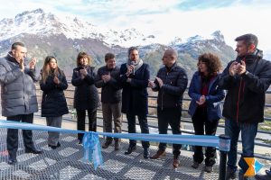 Ushuaia, lunes 22 de mayo de 2023.- “La concreción de los Miradores de los Valles fueguinos, son obras que visibilizan el impulso al sector turísticos que brindan, tanto el gobierno Provincial como el Nacional”, aseguró la Presidenta del Parlamento, vicegobernadora Mónica Urquiza al inaugurar junto al primer mandatario, gobernador Gustavo Melella y funcionarios nacionales, el nuevo mirador del valle Carbajal, ubicado en el kilómetro 3.042 de la ruta nacional Nº 3. En el acto estuvo presente el ministro de Turismo y Deportes, Matías Lammens